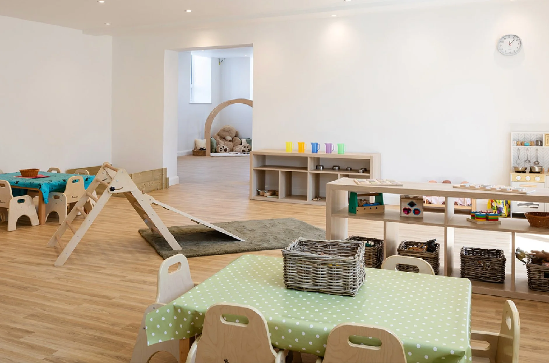 All our learning spaces are specifically designed with safe, uncluttered, calming interiors. All resources are accessible at child height, to spark their imagination and creativity. Our furniture can be fluidly arranged to meet the developmental needs of children. Our environments enable children to feel safe, comfortable and confident; to be curious and independent explorers.